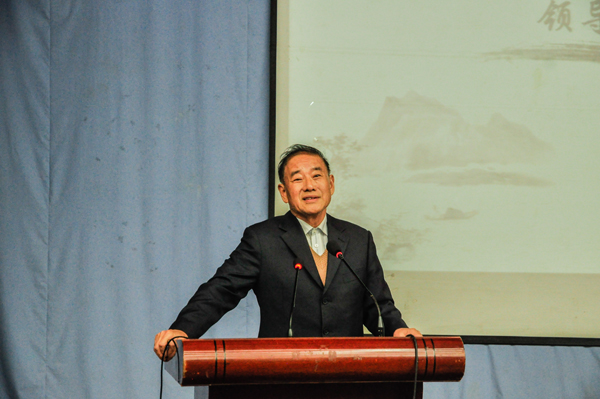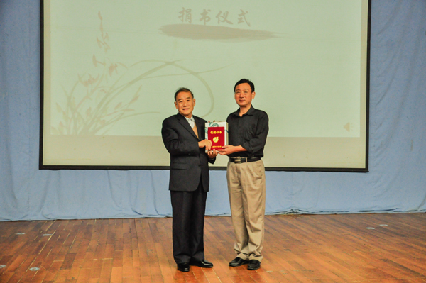 隨后進行了捐書儀式。原校長胡日章向學校捐贈了三百本圖書,并與同學們分享了自己的讀書心得。