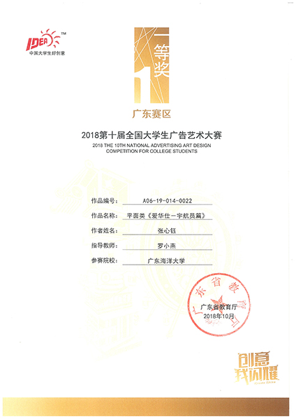 10月19日,“第十屆全國大學生廣告藝術大賽”廣東賽區頒獎典禮在北京師范大學--香港浸會大學聯合國際學院(珠海)舉行,我校中歌藝術學院羅小燕副教授和獲獎學生代表參加頒獎典禮。