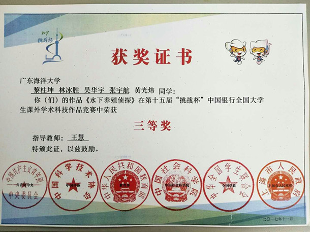 “挑戰杯”是全國大學生課外學術科技作品競賽是由共青團中央、中國科協、教育部、全國學聯和地方政府共同主辦,國內著名大學、新聞媒體聯合發起的一項具有導向性、示范性和群眾性的全國競賽活動,被譽為當代大學生科技創新的“奧林匹克”盛會。近日,第十五屆挑戰杯全國大學生課外學術科技作品競賽圓滿結束,我校水下機器人KC-more團隊的作品《水下養殖偵探》喜獲全國“挑戰杯”大學生課外學術科技作品競賽國賽三等獎。