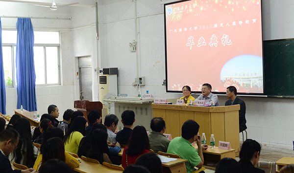 1月8日上午,廣東海洋大學(xué)本部成人高等教育2017屆畢業(yè)典禮在海濱校區(qū)舉行。副校長朱堅真、教務(wù)處副處長張光亞、相關(guān)專業(yè)學(xué)院領(lǐng)導(dǎo)、繼續(xù)教育學(xué)院領(lǐng)導(dǎo),以及教師代表、班主任代表、成人高等教育2017屆畢業(yè)生代表200多人出席了畢業(yè)典禮。繼續(xù)教育學(xué)院院長索慶華高級工程師主持畢業(yè)典禮。