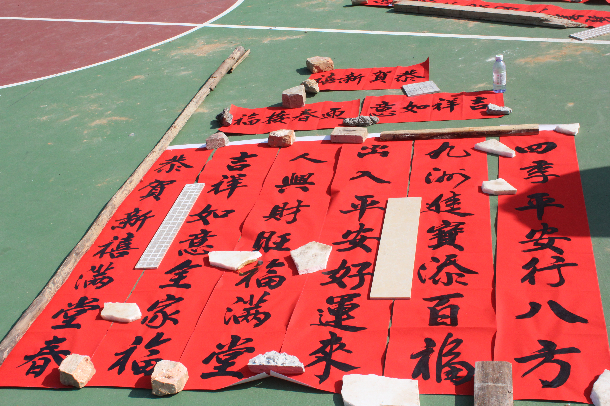 揮毫?xí)阂?楹聯(lián)送吉祥:我校開展迎新春贈春聯(lián)活動