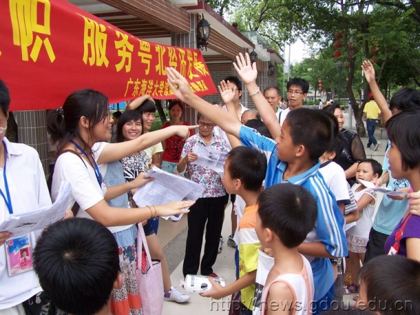 據(jù)統(tǒng)計,今年暑期有將近11000名同學(xué)參加社會實踐活動,完成調(diào)研課題107項,進入湛江市行政機關(guān)參與準入社會實踐87人。有114支社會實踐團隊申報校級團隊,經(jīng)初審和終審答辯后確定37支校級團隊。其中,“濱海飛揚調(diào)研服務(wù)隊”和“海洋先鋒志愿服務(wù)隊”被團省委確定為省級重點團隊,“我愛紅土地——節(jié)水調(diào)研團隊” 申報由團中央聯(lián)合水利部組織開展的2009年全國大學(xué)生志愿者節(jié)水專項調(diào)查項目被確定為全國50支重點團隊之一,“黃金海岸團”被評為第三屆全國青少年綠色長征活動優(yōu)秀團隊,我校被評為最佳組織高校。