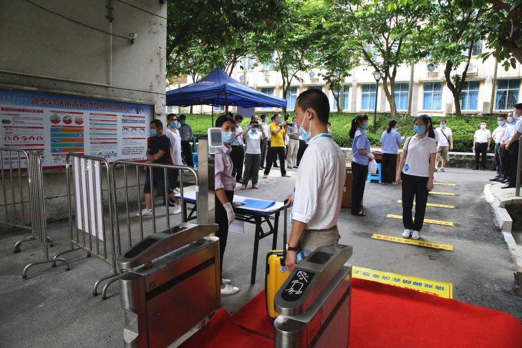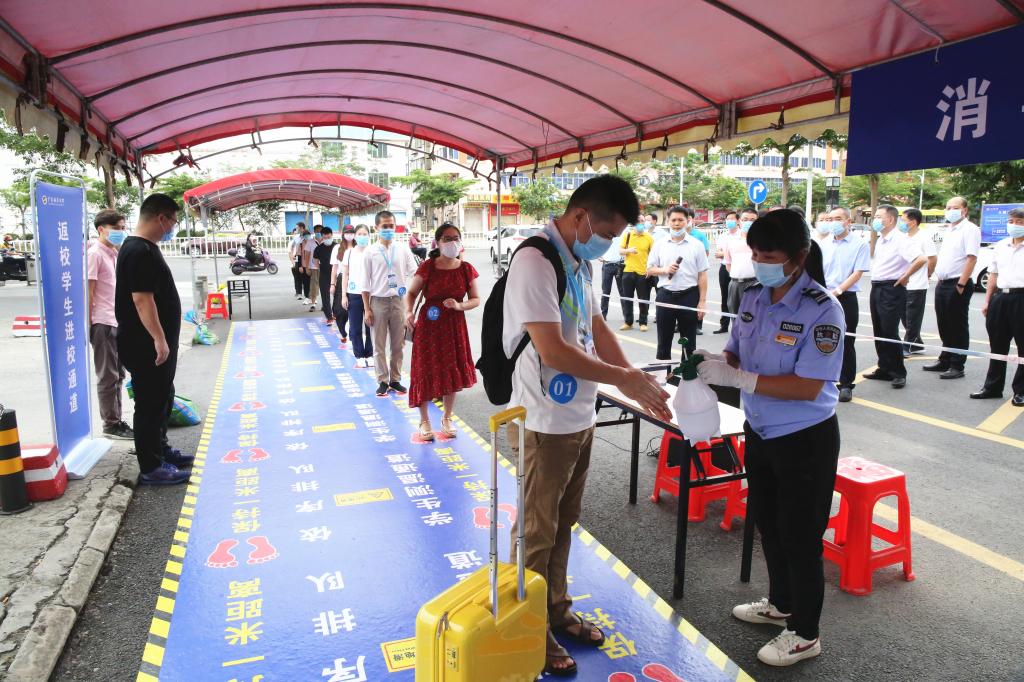 學生返校在即,“大考”迫在眉睫。為進一步提高學校應對新冠肺炎疫情的應急處置能力,繼4月17日、5月11日在湖光校區舉行了第一、二次學生返校模擬演練之后,5月17日上午,學校在海濱校區舉行學生返校疫情防控第三次模擬演練。學校黨委書記、防控領導小組組長曹俊明,學校黨委副書記、防控領導小組常務副組長林曉敏出席演練,學生處、保衛處、后勤集團、校醫院、宣傳部、校團委、教育信心中心、海洋工程學院、海運學院等單位部門主要負責人觀摩演練。