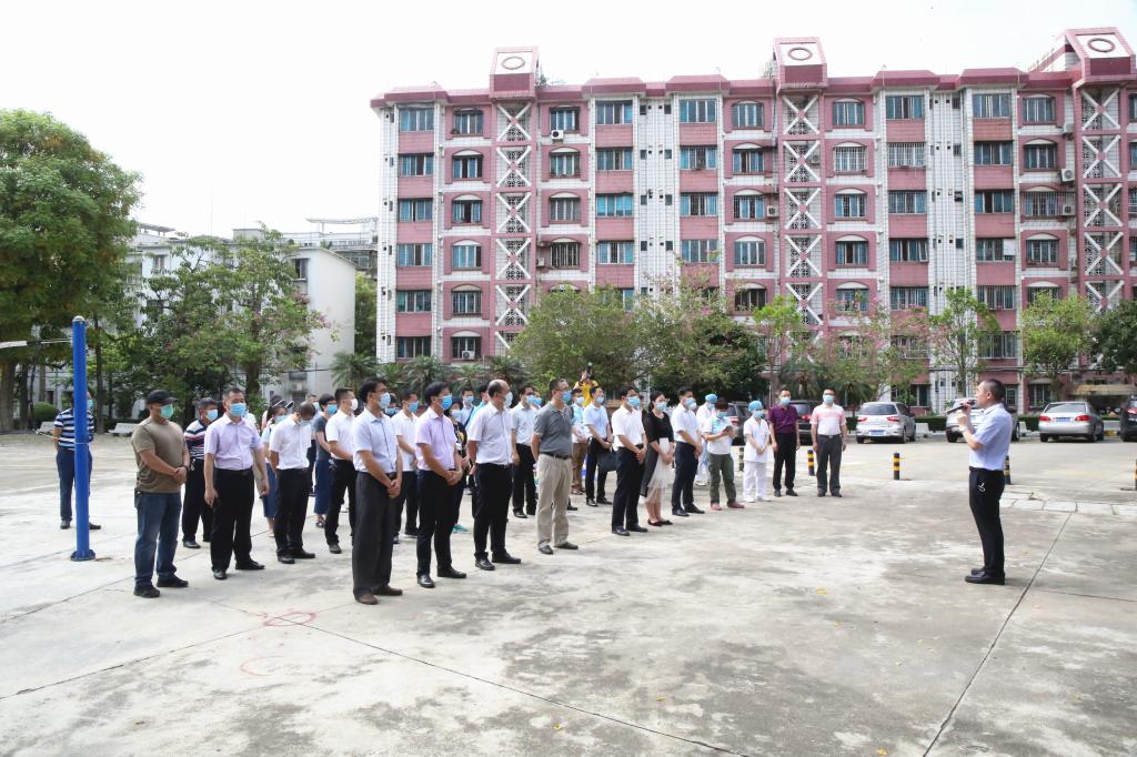演練結束后,出席演練的校領導在海濱校區校醫室門口對演練進行了總結點評。