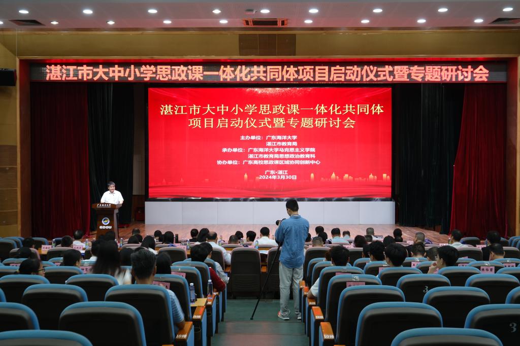 為深入學習貫徹黨的二十大精神,貫徹習近平總書記關于思政課建設的重要論述,推動大中小學思政課一體化建設,3月30日,由廣東海洋大學和湛江市教育局聯合舉辦的湛江市大中小學思政課一體化共同體項目啟動儀式暨專題研討會在我校湖光校區舉行。