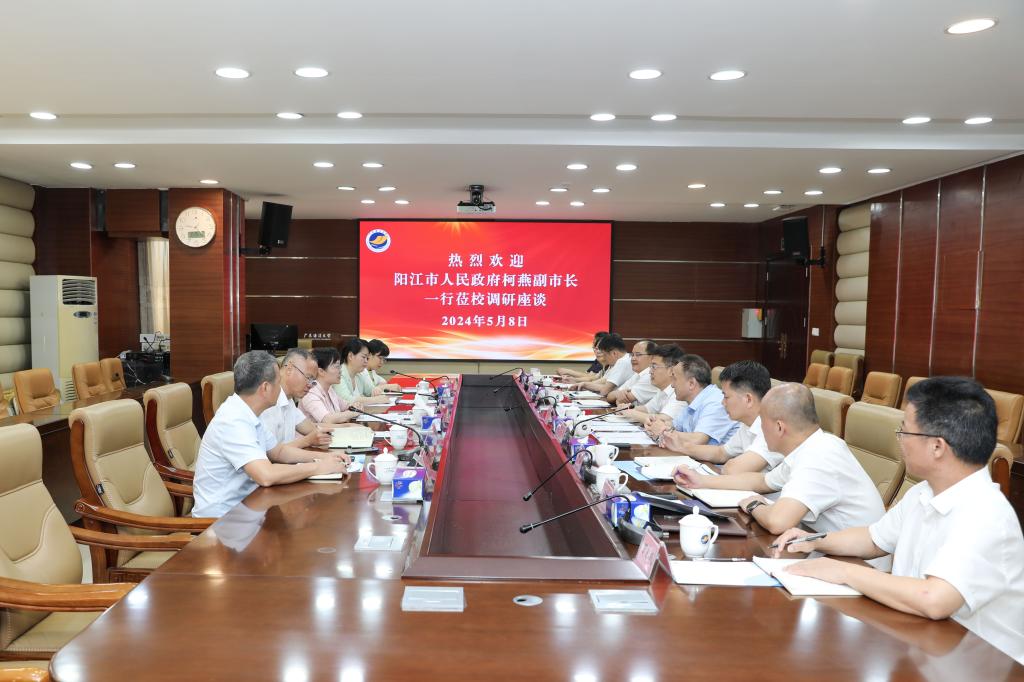 5月8日,陽江市副市長柯燕率市政府副秘書長黃怡、市教育局局長利社會、陽江校區建設辦公室負責人黃藝華、陽江市第一中學黨委書記莫介健等一行蒞臨我校調研。學校黨委書記楊洲,黨委常委、副校長寧凌、周昌仕會見柯燕一行,學校黨政辦公室、人力資源部、教務部、科學技術部、發展規劃部、陽江校區黨委負責人參加座談會。寧凌主持座談會。
