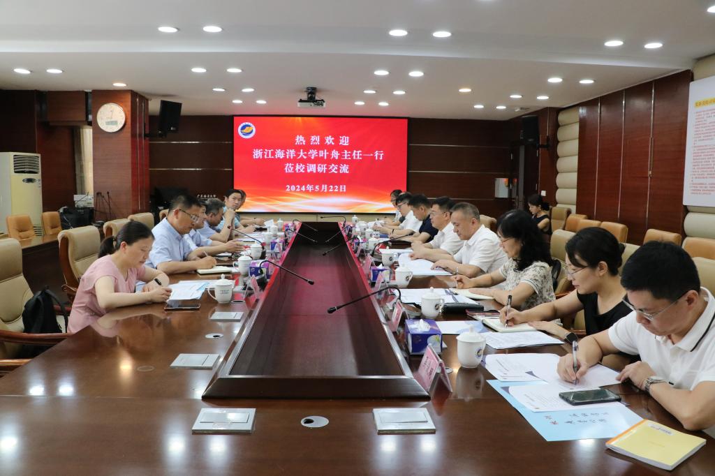 楊洲首先代表學校向葉舟一行到訪表示熱烈歡迎,并圍繞歷史沿革、學校規模、學科發展、挑戰機遇等四個方面介紹了學校發展情況。他指出,浙江海洋大學與我校友誼深厚,希望雙方今后進一步加深交流學習,實現資源共享,共同推動涉海高校辦學發展,高質量服務海洋強國戰略。