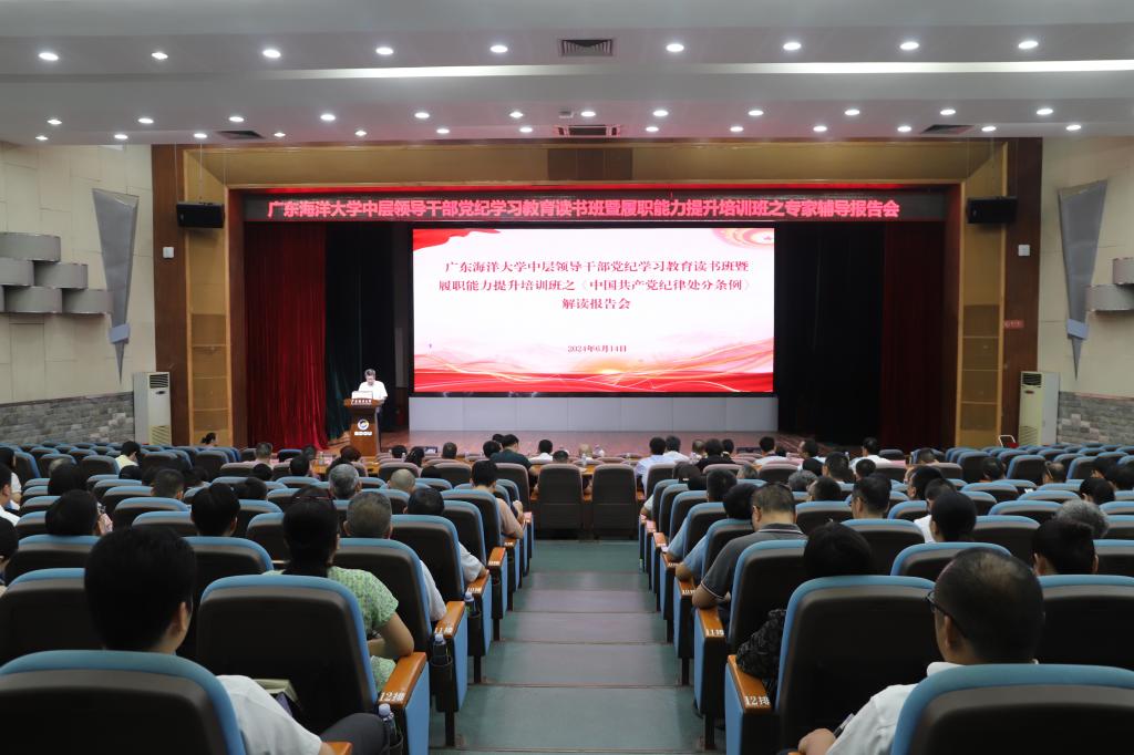 為了深入推動學(xué)校黨紀(jì)學(xué)習(xí)教育走深走實(shí),從嚴(yán)從實(shí)抓好黨的紀(jì)律建設(shè),筑牢黨員領(lǐng)導(dǎo)干部的廉潔自律意識,根據(jù)學(xué)校工作安排,6月14日上午,學(xué)校在廣學(xué)樓多功能廳舉行黨紀(jì)學(xué)習(xí)教育讀書班學(xué)習(xí)會,專題學(xué)習(xí)《中國共產(chǎn)黨紀(jì)律處分條例》,會議邀請湛江市紀(jì)委監(jiān)委審理室副主任繆怡然作專題輔導(dǎo)報(bào)告。學(xué)校全體副處級(含相當(dāng))以上干部、機(jī)關(guān)全體黨員參加會議,會議由學(xué)校紀(jì)委副書記、紀(jì)檢監(jiān)察室主任肖文輝主持。