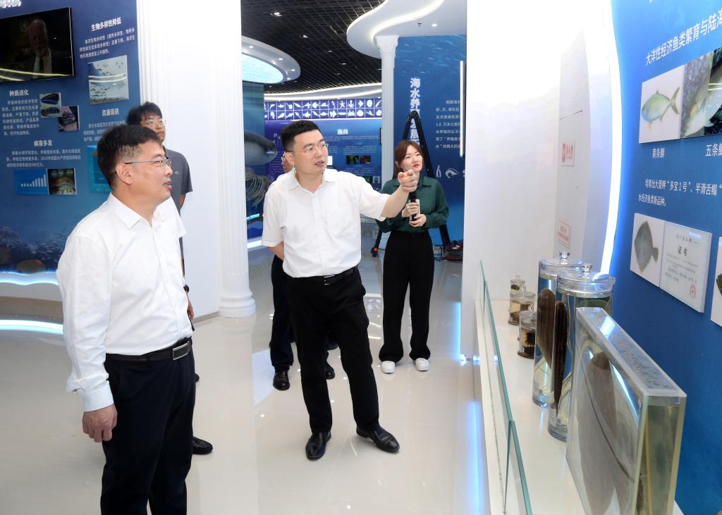 中國(guó)海洋大學(xué)黨委書(shū)記田輝向我校調(diào)研組一行介紹了學(xué)校基本情況、發(fā)展目標(biāo)和工作思路,特別是在高水平服務(wù)省市高質(zhì)量發(fā)展中取得標(biāo)志性成果和學(xué)校百年校慶籌備情況。他希望兩校在學(xué)科建設(shè)、平臺(tái)建設(shè)、海洋人才培養(yǎng)方面加強(qiáng)合作,為海洋強(qiáng)國(guó)戰(zhàn)略貢獻(xiàn)智慧和力量。楊洲表示,中國(guó)海洋大學(xué)是國(guó)家海洋人才培養(yǎng)的“領(lǐng)頭羊”,學(xué)校創(chuàng)建了獨(dú)具中國(guó)特色的綜合性涉海學(xué)科體系,海洋科學(xué)和水產(chǎn)學(xué)科已進(jìn)入世界一流學(xué)科前列,引領(lǐng)帶動(dòng)海洋科教創(chuàng)新發(fā)展,是海洋類高校學(xué)習(xí)的標(biāo)桿。他希望兩校加強(qiáng)溝通,發(fā)揮南北各自優(yōu)勢(shì),高質(zhì)量服務(wù)國(guó)家海洋強(qiáng)國(guó)戰(zhàn)略。調(diào)研組還參觀了該校深遠(yuǎn)海與極地漁業(yè)研究中心、海水養(yǎng)殖教育部重點(diǎn)實(shí)驗(yàn)室、水產(chǎn)科學(xué)實(shí)驗(yàn)教學(xué)中心等。