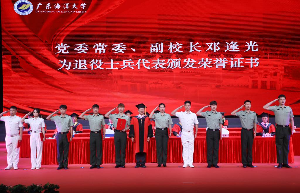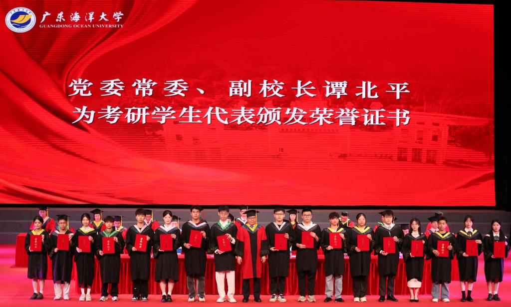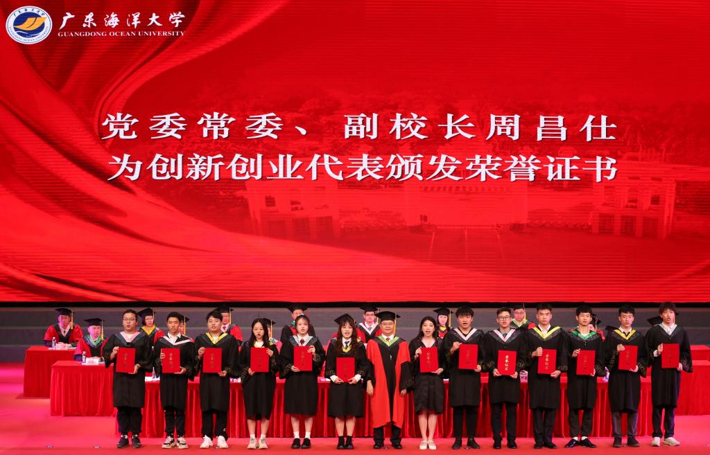 典禮上,校領(lǐng)導(dǎo)為優(yōu)秀本科畢業(yè)生代表、優(yōu)秀研究生畢業(yè)生代表、優(yōu)秀志愿者代表、創(chuàng)新創(chuàng)業(yè)代表、退役士兵代表、考研學(xué)生代表等2024屆優(yōu)秀畢業(yè)生代表頒獎。“學(xué)海無涯,永攀高峰!”“向海圖強(qiáng),筑夢深藍(lán)!”“夢想彼岸,我已登陸!”“青春引領(lǐng)創(chuàng)業(yè),創(chuàng)新塑造未來!”“家國情懷,青春擔(dān)當(dāng)!”……領(lǐng)獎臺上,畢業(yè)學(xué)子們發(fā)出“拼搏正當(dāng)時”的宣言。