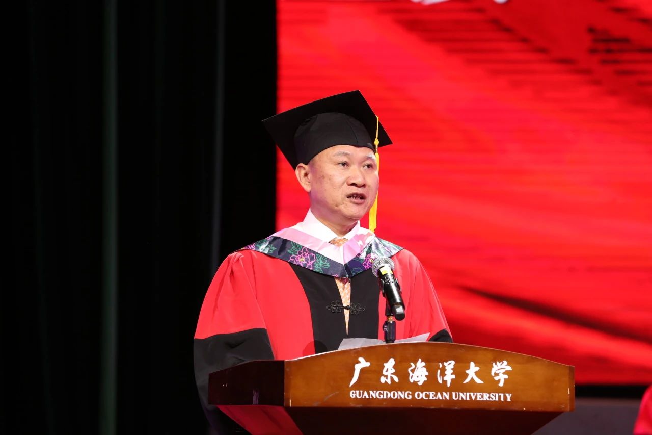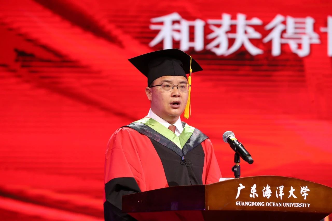 水產(chǎn)學(xué)院李忠爐副教授作為教師代表發(fā)言,勉勵廣大畢業(yè)生要保持一顆謙遜的心、好奇的心、愛國的心,牢記自己的責(zé)任和使命,不忘海大“三能人才”底色,將個人的奮斗與時代的脈搏緊密結(jié)合,為祖國的繁榮和富強(qiáng)貢獻(xiàn)自己的力量。