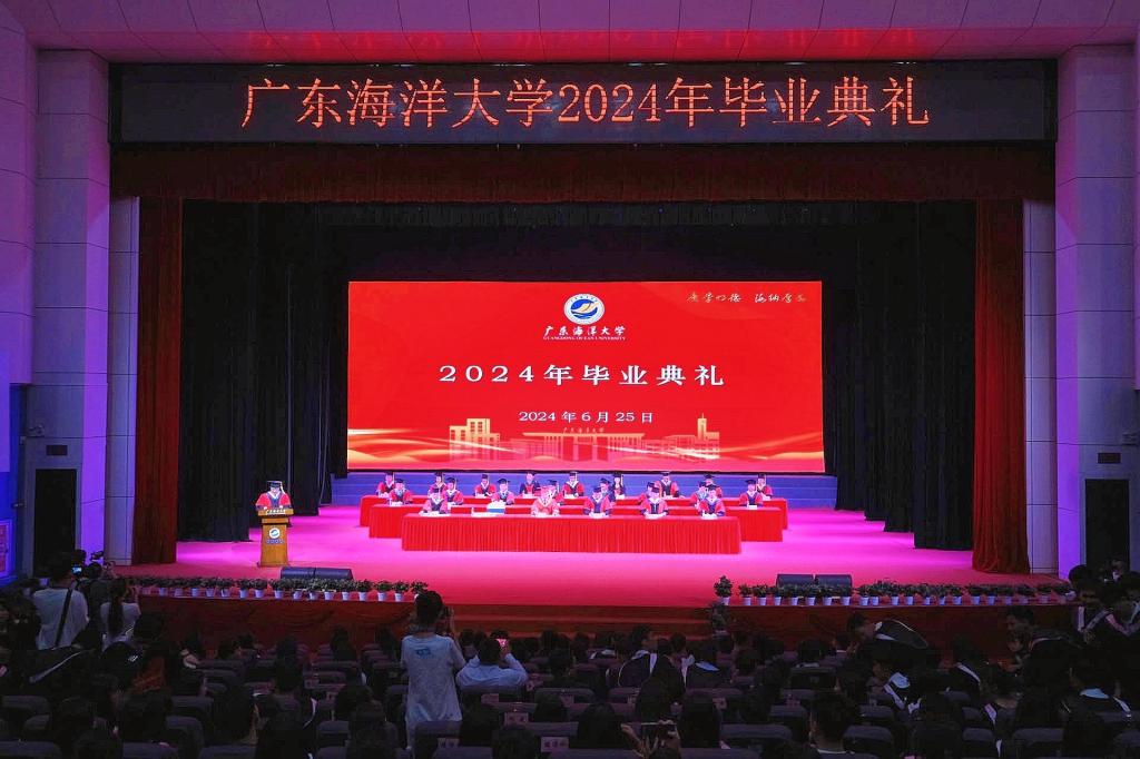 聆聽大學(xué)“最后一課”、撥穗正冠為青春“加冕”、護(hù)送畢業(yè)紀(jì)念旗入場、唱響青春“演唱會”、策劃“走心”畢業(yè)禮、發(fā)出青春“誓言”、“打卡墻”留影……6月25日,學(xué)校2024年畢業(yè)典禮暨學(xué)位授予儀式以線上線下相結(jié)合的方式舉行,10000余名海大學(xué)子帶著師長的殷殷囑托、家人的深深祝福、同學(xué)的綿綿情誼,在滿滿的“青春儀式感”中,吹響奔赴未來的號角。學(xué)校領(lǐng)導(dǎo)楊洲、譚北平、寧凌、鄧逢光、周昌仕、林宇出席典禮。2024屆畢業(yè)生、相關(guān)職能部門負(fù)責(zé)人、各學(xué)院領(lǐng)導(dǎo)以及教師代表、家長代表參加了畢業(yè)典禮。學(xué)校黨委常委、副校長寧凌主持典禮。