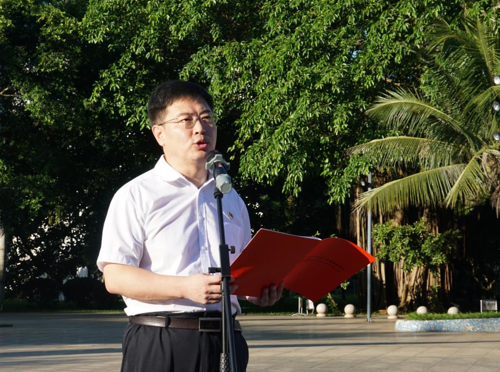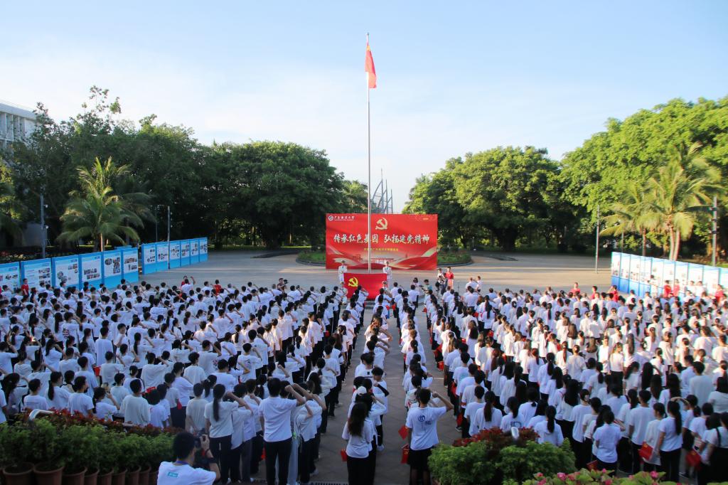 7月1日上午,我校分別在湖光校區海洋廣場、海濱校區共青廣場、陽江校區錦繡廣場舉行“傳承紅色基因 弘揚建黨精神”主題升國旗活動,熱烈慶祝中國共產黨成立103周年。學校領導楊洲、譚平、譚北平、寧凌、鄧逢光、周昌仕、林宇出席活動。學校黨委書記楊洲在湖光校區作國旗下講話,學校黨委常委、副校長鄧逢光主持湖光校區升旗活動。學校黨委委員、紀委委員,各學院黨委書記、學校機關、教輔、后勤部門負責人、師生代表共2600多人次參加三個校區現場活動,其余師生通過企業微信平臺在線參加升旗活動。