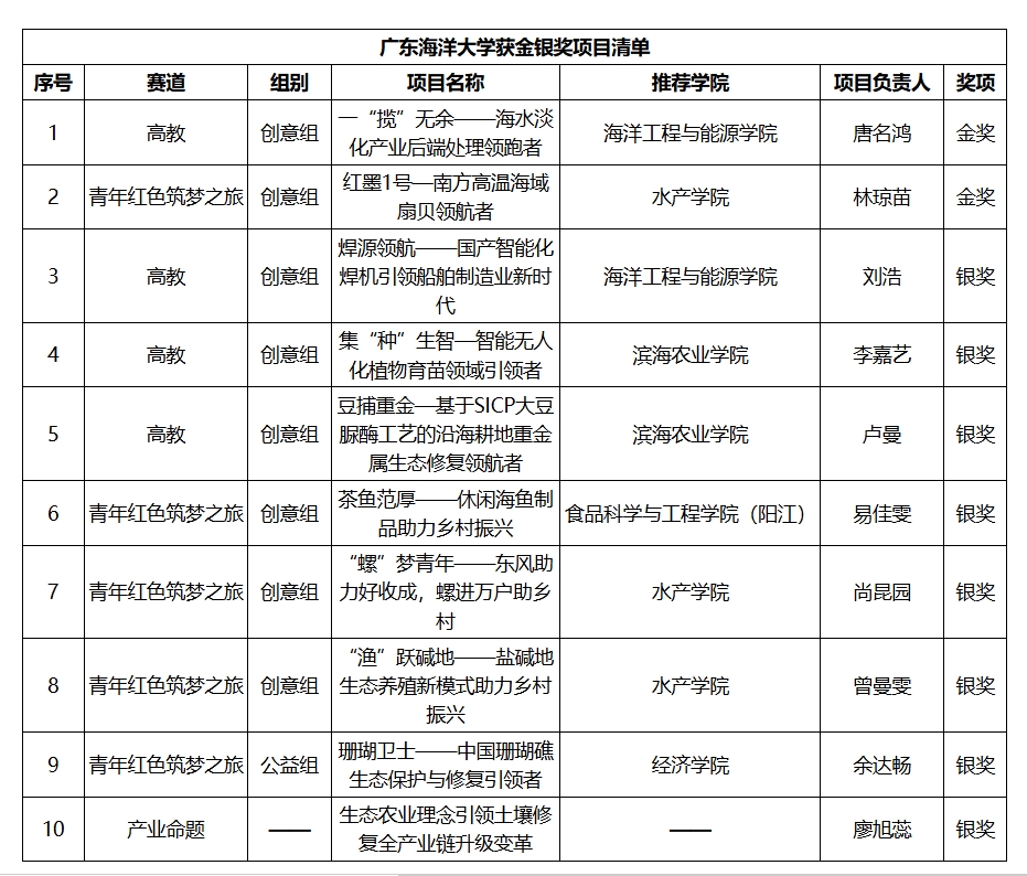8月19日至21日,中國國際大學生創(chuàng)新大賽(2024)廣東省分賽在嶺南師范學院落下帷幕。廣東海洋大學參賽學子奮力拼搏,與來自全省高校的370個項目團隊同臺競技,經(jīng)過激烈的角逐比拼,最終斬獲2金8銀的優(yōu)異成績,獲獎數(shù)量排在全省本科院校前列,我校榮獲學校集體獎。
