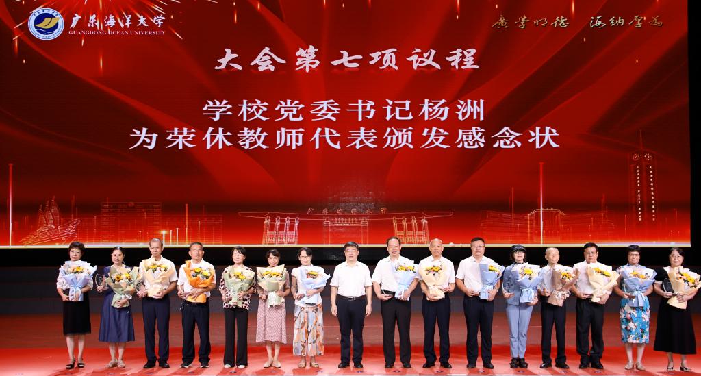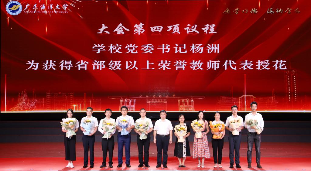 學校黨委書記楊洲出席會議并講話,黨委副書記譚平宣讀表彰名單。黨委常委、副校長譚北平主持會議,學校領導寧凌、鄧逢光、周昌仕、林宇出席會議。獲獎教師代表、各單位(部門)主要領導、榮休教師、教齡滿30周年以上教師代表、新入職教師代表、各學院教師代表、輔導員代表、學生代表等在中歌藝術學院實驗劇場現(xiàn)場參加大會。湖光、海濱、霞山、陽江校區(qū)師生員工通過線上平臺收看了大會直播。