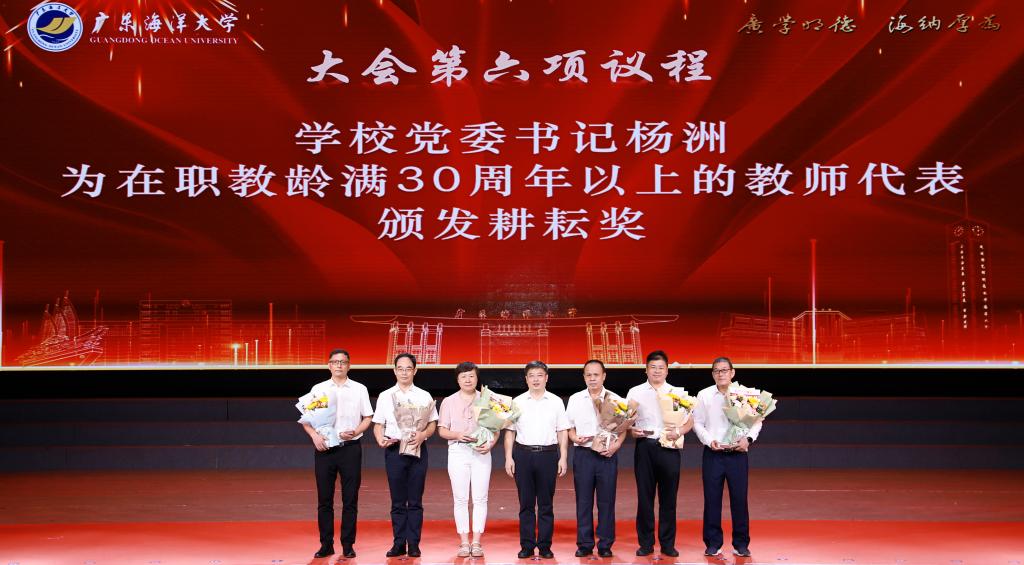 學校黨委書記楊洲向在職教齡滿30周年以上的教師代表頒發(fā)“耕耘獎”