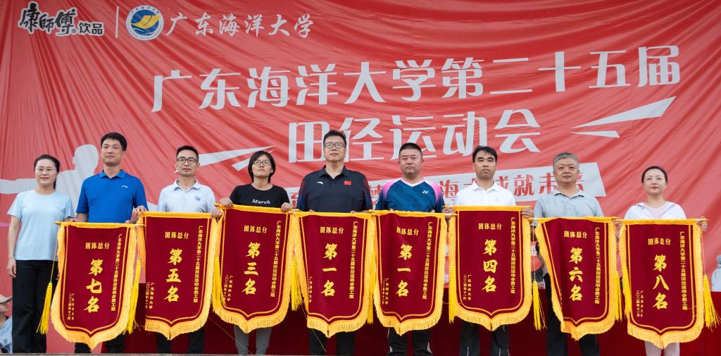閉幕式上,與會領導分別為獲獎代表團隊頒獎。體育與休閑學院、管理學院、經濟學院、陽江校區、數學與計算機學院、電子與信息工程學院、濱海農業學院、水產學院、船舶與海運學院分別榮獲學生組團體總分前八名;體育與休閑學院、后勤工會、機關工會、水產學院、中歌藝術學院、濱海農業學院、電子與信息工程學院、管理學院分別榮獲教工組團體總分前八名;船舶與海運學院、化學與環境學院學生代表隊榮獲“體育道德風尚獎”;經濟學院、管理學院學生代表隊榮獲“優秀組織獎”。