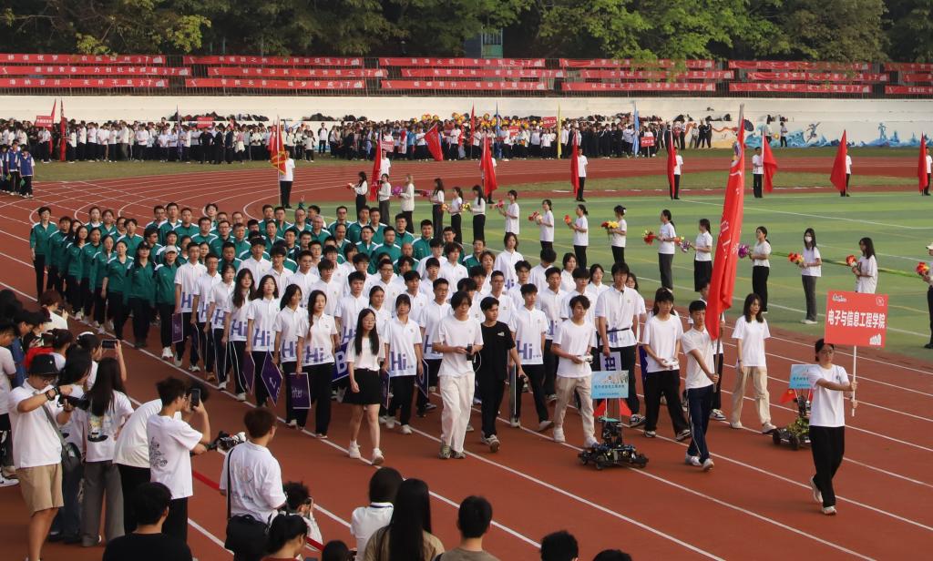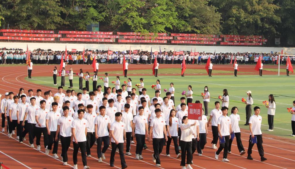 11月15日上午,運動會舉行開幕式。學校黨委書記楊洲,黨委副書記譚平,黨委常委、副校長鄧逢光、周昌仕,黨委常委、宣傳統戰部部長林宇,以及各相關職能部門和學院領導出席開幕式。楊洲宣布運動會開幕,鄧逢光主持開幕式。