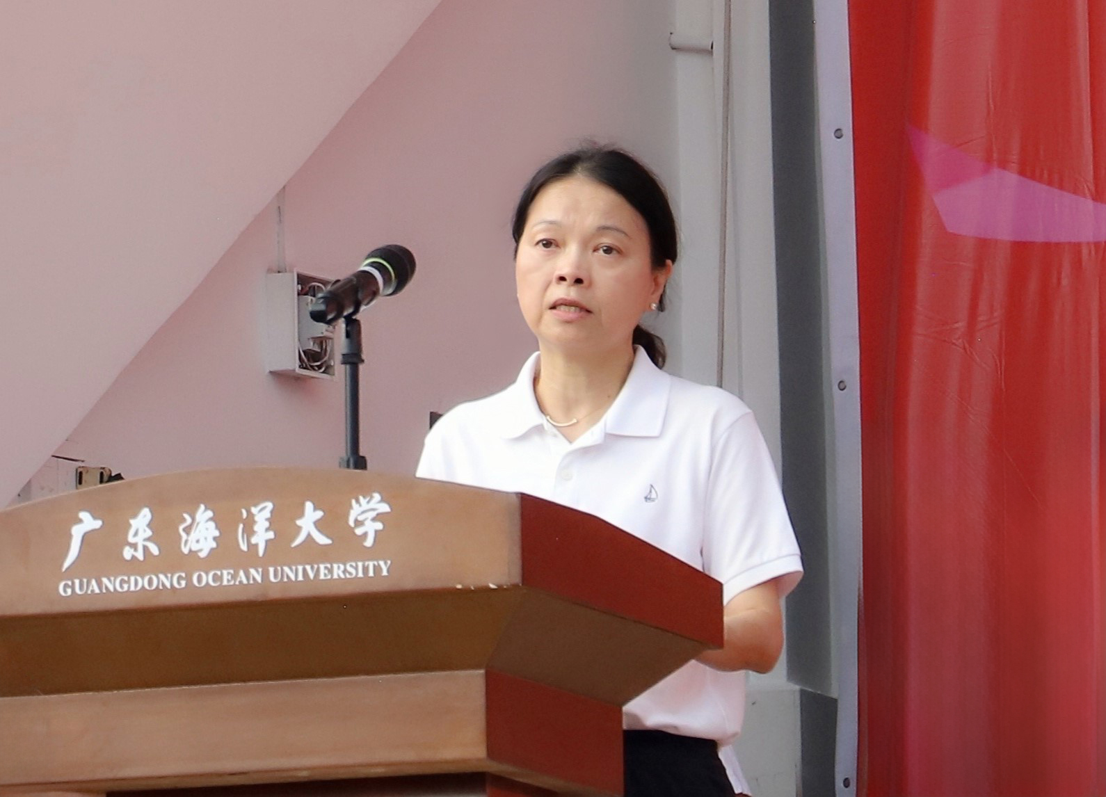 譚平致開幕詞。她代表學校向本屆田徑運動會的成功舉辦表示熱烈祝賀,向辛勤訓練、積極準備的師生員工們致以誠摯問候與美好祝福,向為運動會各項籌備工作傾注心血的工作人員表達深切謝意。譚平指出,學校積極響應黨中央號召,強化體育育人,傳承海大體育優良傳統,組織了一系列豐富多彩的體育健身活動。師生在體育競技中屢獲佳績,如女子籃球隊奪得CUBA二級聯賽廣東賽區冠軍,武術代表隊在全國錦標賽中斬獲兩冠,展現了海大人的堅韌拼搏精神。譚平強調,體育事業的高質量發展是學校高質量發展的重要組成部分。希望全體師生圍繞新時代高質量發展“1918”工作安排,用中華體育精神凝聚力量,將運動激情轉化為干事創業熱情,助力高水平海洋大學建設。譚平號召大家積極投身于全民體育中,努力養成良好且科學的體育鍛煉習慣,并衷心祝愿每位運動員都能賽出風格、賽出水平、賽出友誼,共同譜寫海大新篇章。