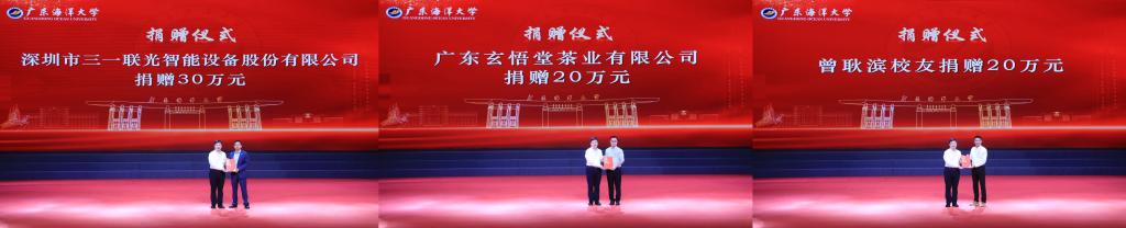 會上還舉行了校友捐贈儀式,楊洲代表學校接受校友彭麗潔、周偉文、曾耿濱,校友企業佛山市幸福蟲旅生態環境科技有限公司、深圳市三一聯光智能設備股份有限公司、廣東玄悟堂茶業有限公司,深圳校友會等捐贈并頒發捐贈證書。