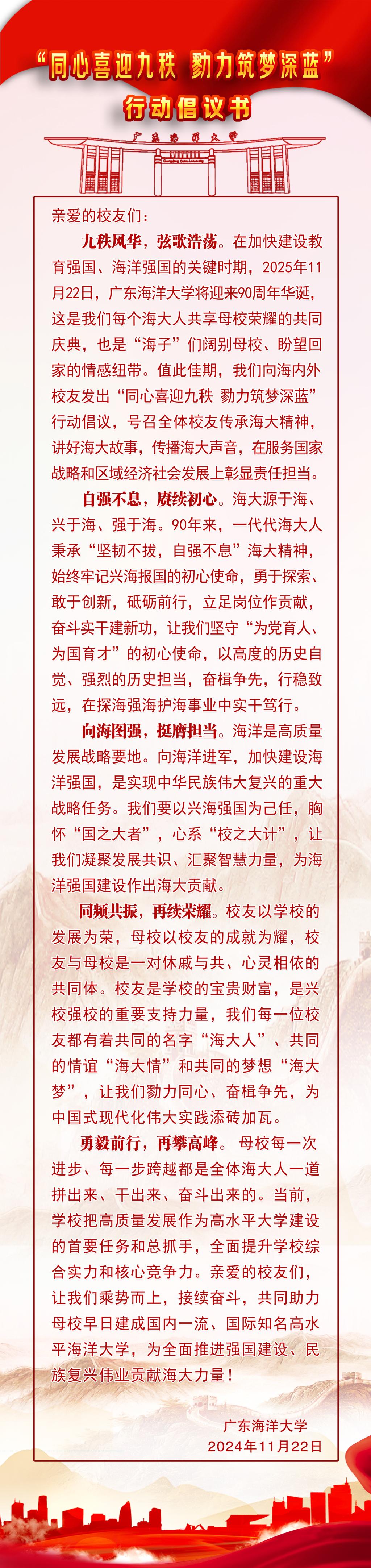 “同心喜迎九秩 勠力筑夢深藍” 行動倡議書