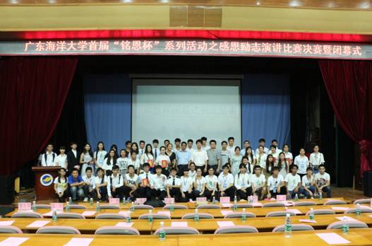4月24日-5月15日舉行的“ 銘恩杯” 系列活動(dòng)的宗旨是“關(guān)注貧困生,服務(wù)海大人”,主題是“銘恩誠(chéng)信,奮志尚學(xué)”,形式有拔河比賽、義工活動(dòng)、義教活動(dòng)、感恩勵(lì)志演講等,閉幕式給首屆“銘恩杯”畫上了完美的句號(hào)。