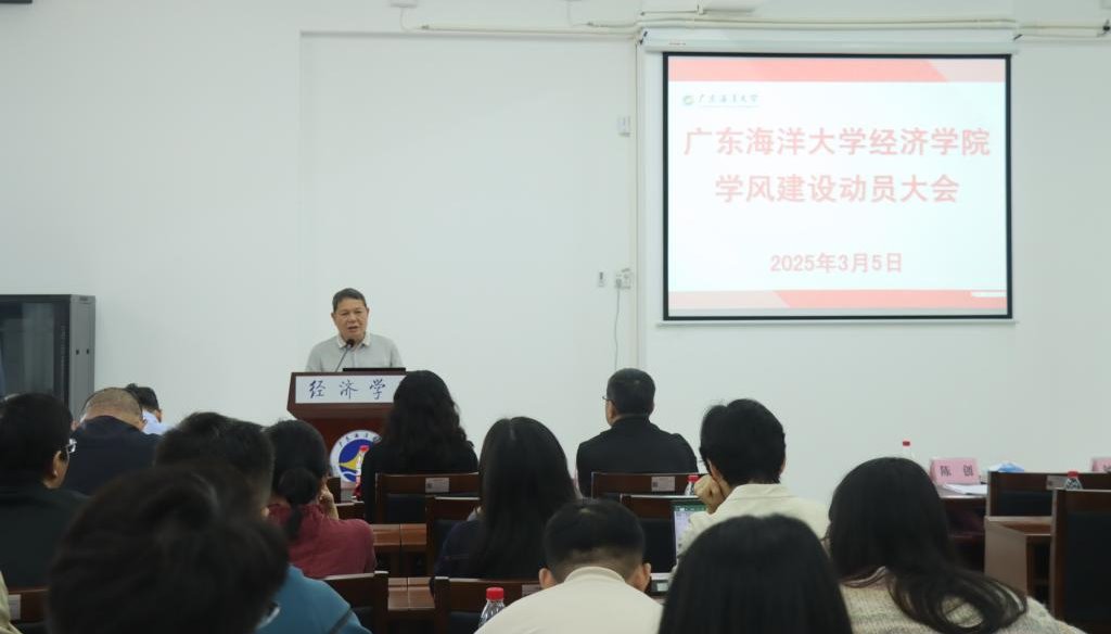 為貫徹落實《廣東海洋大學學風建設三年行動方案(2025-2027年)》文件精神,積極響應學校黨委部署安排,扎實推進學院優良學風建設,3月5日,經濟學院在文科樓3號樓508室召開學風建設動員大會,經濟學院全體教職工參加會議,會議由學院黨委書記陳創主持。