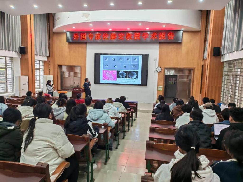 3月6日,應濱海農業學院邀請,日本山口大學佐藤宏教授在湖光校區興農樓109室為我校師生作了題為《Kudoa(Cnidaria: Myxozoa)in marine fish species diversity and food poisoning》的學術報告。報告會由院長馬驛教授主持,動物醫學系師生代表及水產學院水醫系教師代表等80余人參會。
