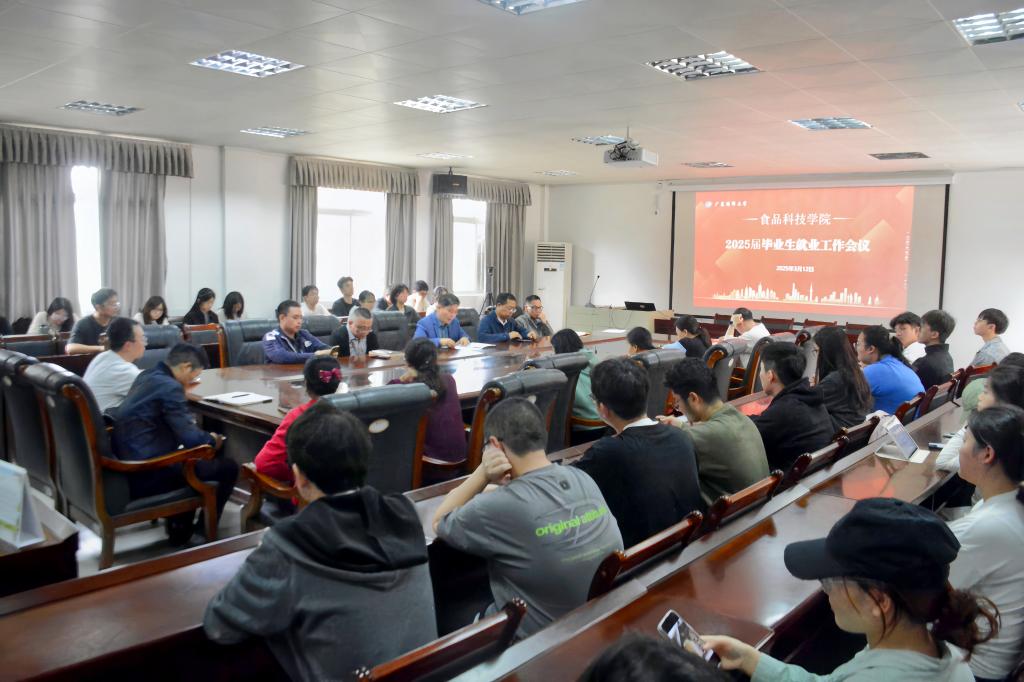 3月12日,食品科技學院在望海樓A105室召開2025屆畢業生就業工作會議,分析研判就業形勢,部署推進重點工作。學院領導、系主任、畢業班班主任、全體輔導員及畢業班學生代表共50余人參加會議。會議由學院黨委副書記羅智勇主持。