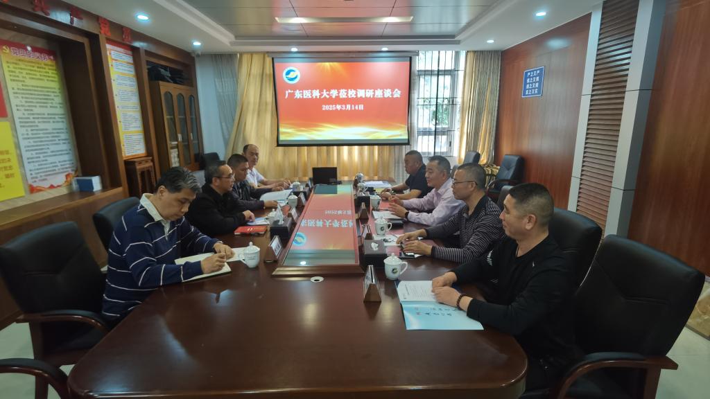 3月14日,廣東醫科大學保衛(武裝)部部長韋榮寒率隊來校調研交流。學校黨委保衛部(武裝部)部長溫一星主持召開座談會,副部長林國高、喬明海及相關科室負責人參加會議。