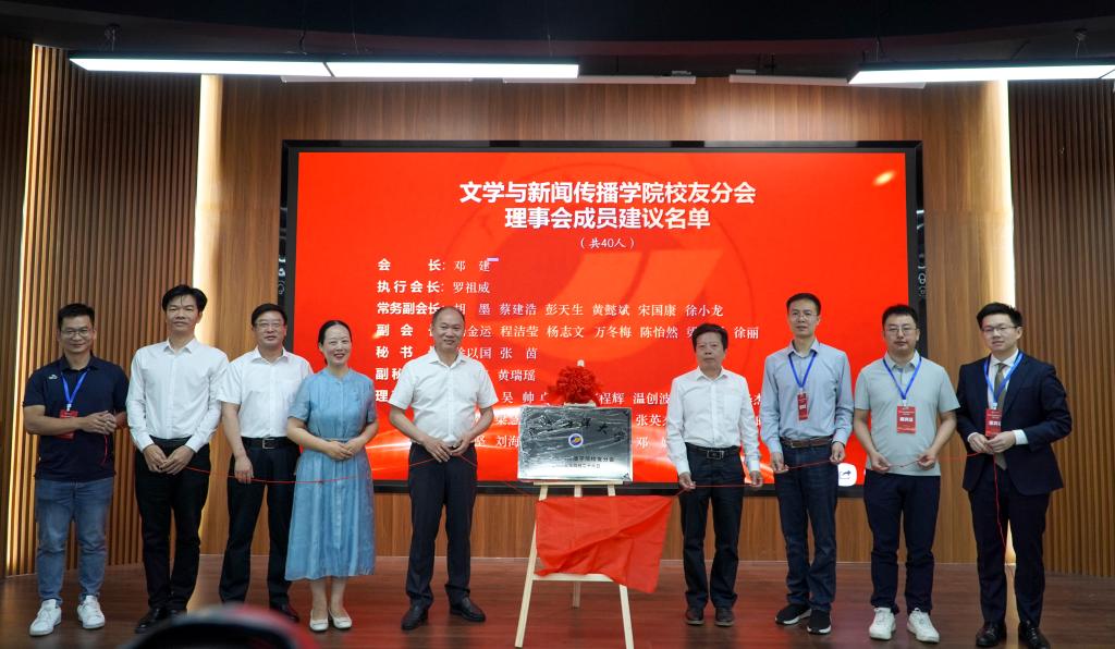 會上,莫精華宣讀了學校關于成立文學與新聞傳播學院校友分會的批復。會議正式確定了校友分會理事會人員。新成立的校友分會理事會由鄧建擔任會長、2002級校友羅祖威擔任執(zhí)行會長。鄧逢光與學院主要領導和校友代表共同為校友分會揭牌,并為鄧建、羅祖威頒發(fā)了聘書。