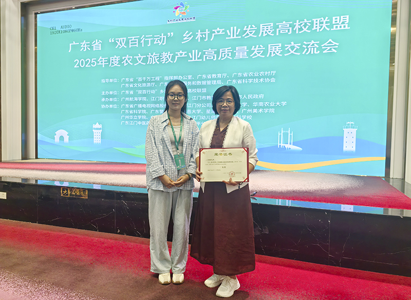本次交流會以農(nóng)文旅教融合賦能“百千萬工程”為主題。會議現(xiàn)場公布了2025年“雙百行動”鄉(xiāng)村文旅產(chǎn)業(yè)典型案例評選結(jié)果。經(jīng)專家評審,我校中歌藝術(shù)學(xué)院羅小燕教授申報的典型案例榮獲廣東省“雙百行動”鄉(xiāng)村產(chǎn)業(yè)發(fā)展高校聯(lián)盟二等獎,充分體現(xiàn)了我校在“雙百行動”中發(fā)揮藝術(shù)學(xué)科優(yōu)勢,深入推進(jìn)校地合作,以藝術(shù)賦能鄉(xiāng)村振興的顯著成效。