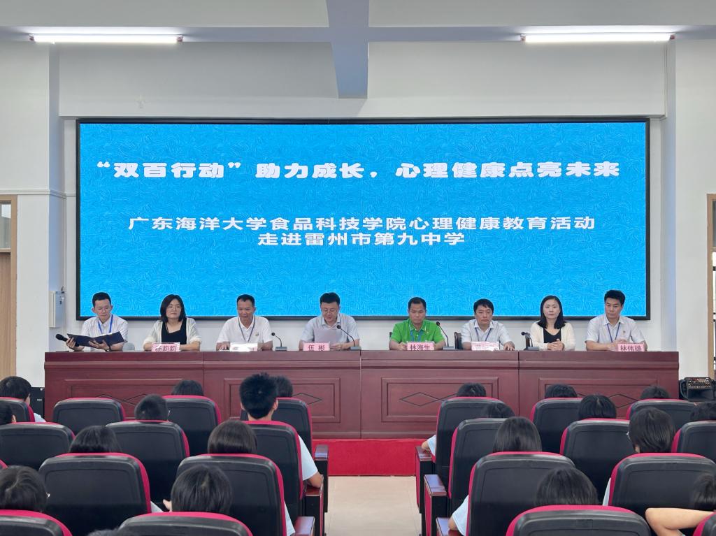 6月18日,食品科技學院黨委書記伍彬帶領心理健康教育與咨詢中心楊莉莉老師及食品科技學院小浪花心理驛站團隊,前往雷州市第九中學開展以“‘雙百行動’助力成長,心理健康點亮未來”為主題的心理健康教育活動。雷州市第九中學校長林海生及“雙百行動”駐雷州市服務隊同志參加了活動。