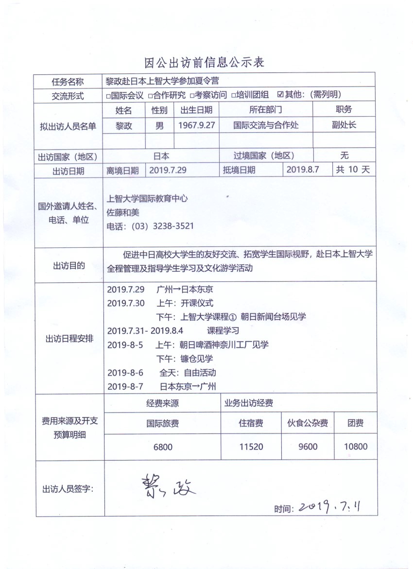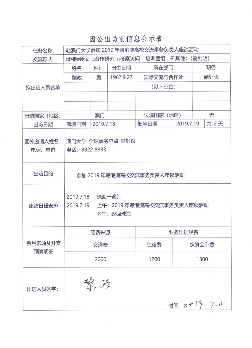 因公出訪信息公示