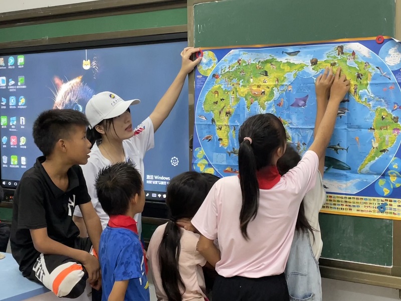 本次社會實踐深入貫徹落實習(xí)近平總書記關(guān)于“三農(nóng)”工作的重要論述,緊緊圍繞“國之大者”的深刻內(nèi)涵,深刻領(lǐng)悟“為什么要振興鄉(xiāng)村”、“怎樣振興鄉(xiāng)村”等系列重大理論和實踐問題。實踐以“教育關(guān)愛”為落腳點,結(jié)合團隊成員專業(yè)特長,從“科學(xué)文化”“文藝體育”“紅色革命”三個板塊設(shè)計活動。課程內(nèi)容包括:衛(wèi)生健康教育,地理基礎(chǔ)知識講授,家鄉(xiāng)鄉(xiāng)情鄉(xiāng)貌介紹,美術(shù)繪畫課,跆拳道基礎(chǔ)課,《中國少年先鋒隊隊歌》學(xué)唱等。與此同時,團隊成員高度重視豐富小朋友們的課余生活,和小朋友一起踢足球,幫小朋友扎辮子等。最后帶領(lǐng)小朋友們來到廣東海洋大學(xué)陽江校區(qū)參觀大學(xué)校園,在他們心中埋下一顆夢想的種子,旨在鼓勵小朋友努力學(xué)習(xí),堅定用知識改變命運的信念,樹立起建設(shè)家鄉(xiāng),回報社會,報效祖國的遠大理想。