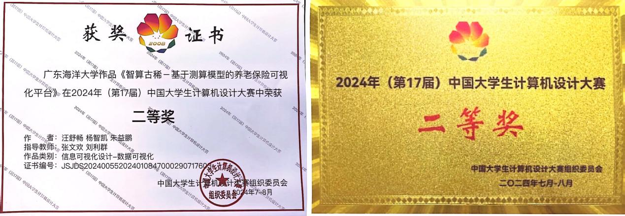 8月18日至21日,2024年(第17屆)中國大學生計算機設計大賽全國總決賽(信息可視化設計/計算機音樂創作賽道)在浙江師范大學舉辦。學院參賽的學生團隊與來自全國的1200余名師生參與角逐,最終脫穎而出,作品《智算古稀——基于測算模型的養老保險可視化平臺》榮獲全國二等獎。