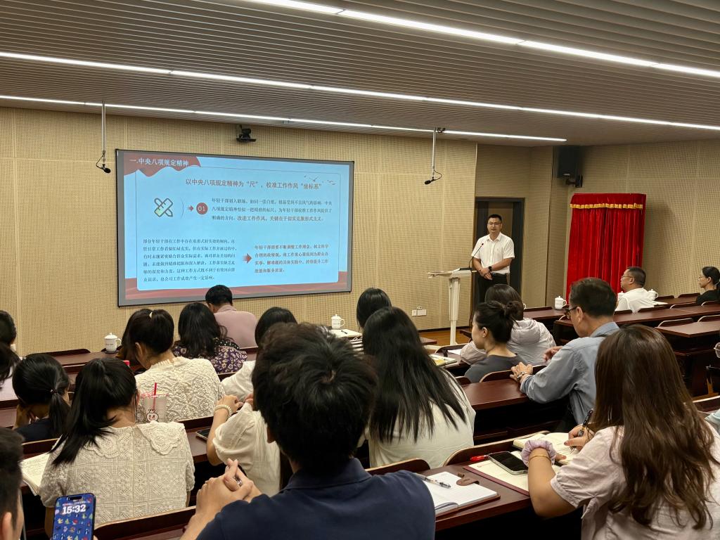 會上,白浚宇以《以青春之擔當深入貫徹中央八項規定精神學習教育》為題講授專題黨課,強調了全體黨員干部必須將中央八項規定精神內化于心、外化于行,不斷改進作風,密切聯系群眾,主動擔當作為,推動校區各項工作任務落實落地。