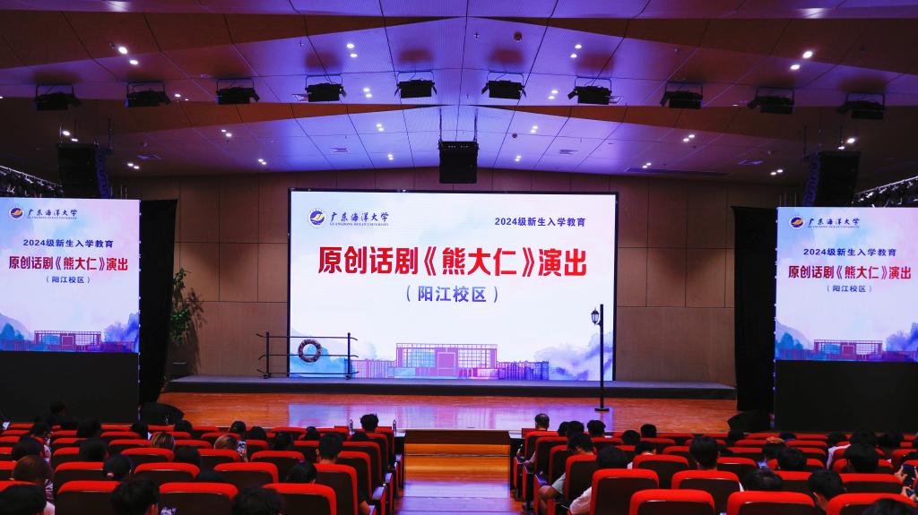 10月16日下午,由校區學生事務部主辦的陽江校區2024級新生入學教育——“我與海大共奮進”系列主題教育之話劇《熊大仁》演出活動在海納樓113報告廳舉行。校區黨委副書記陳永強,各部門、各學院負責人以及2024級所有新生現場觀看了演出。
