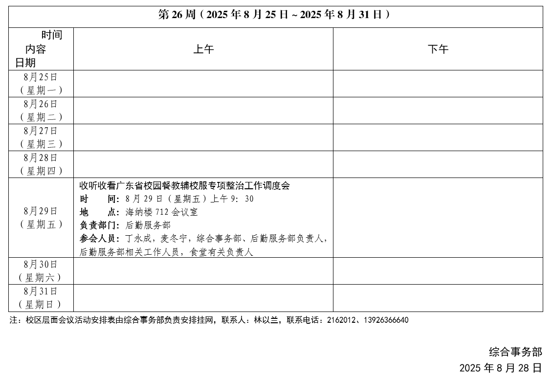 2024~2025學(xué)年第二學(xué)期第26周會議活動安排表